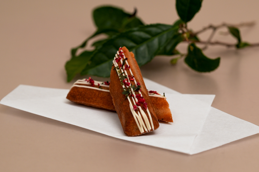 ホワイトチョコとフランボワーズの華やかさに、煎茶のアクセントをきかせた、この季節だけの特別なフィナンシェです。