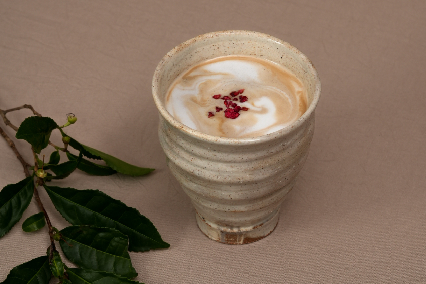 茶釜から抹茶を点てる様子を楽しみながら、茶葉本来の旨みを楽しめる味わえる有機緑茶をはじめ、薄茶(有機特上抹茶)や有機玉露玄米茶、有機和紅茶やこれらの茶葉を使用したラテ(ヴィーガン対応としてオーツミルクも提供)、季節のドリンクなどを楽しんでいただけます。